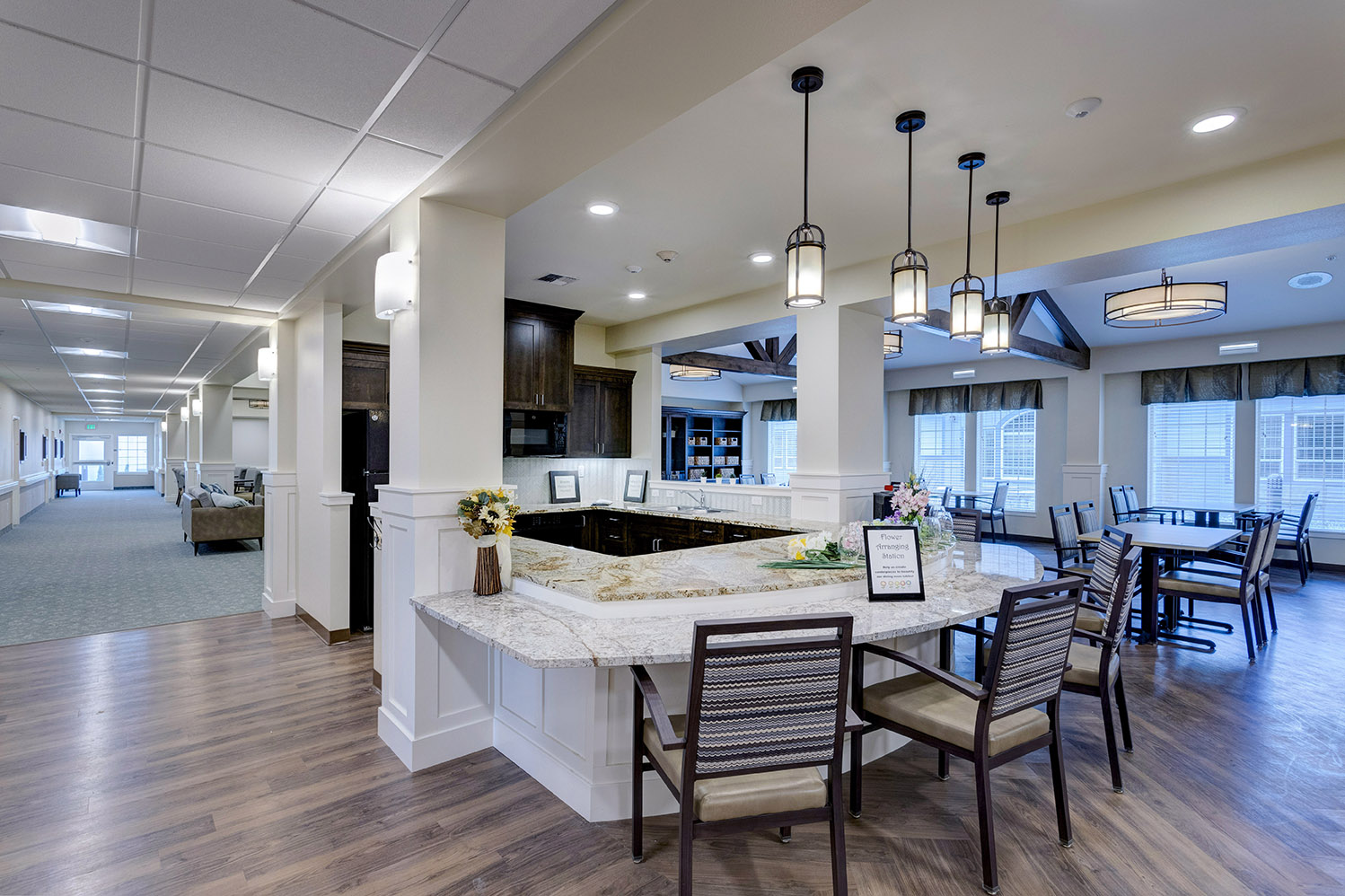 This single-story memory care community includes fifty-six private suites nestled within warmly designed dining and common areas, indoor gathering spaces, and outdoor courtyards. The Bouten field team used Lean construction pull planning to engage all trade partners in establishing and tracking activities, their focus on achieving workflow efficiency, elimination of waste, and enhanced safety and quality. The result of these efforts was a final cost below the guaranteed maximum price.